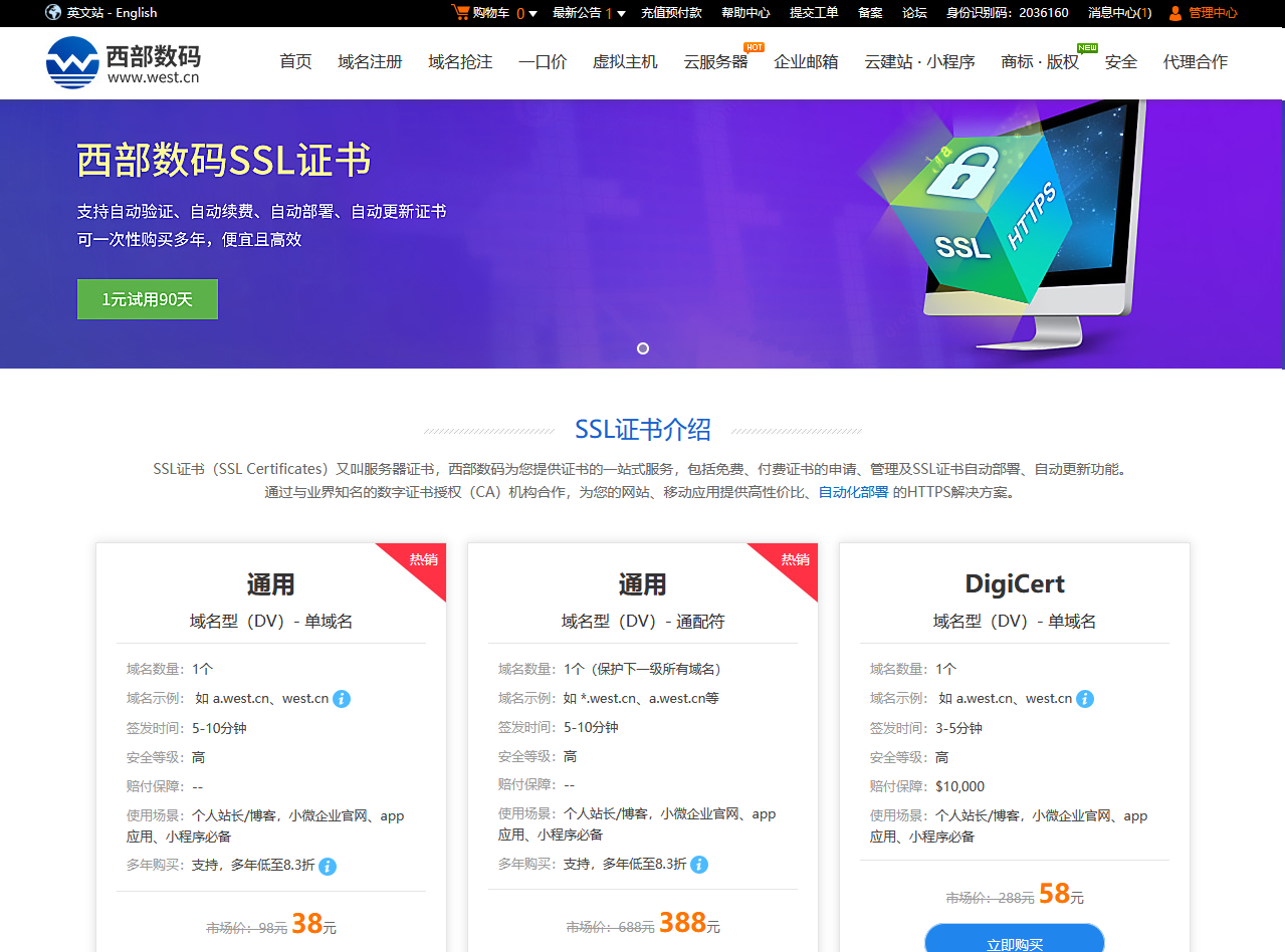 SSL证书-免费SSL证书申请-西部数码